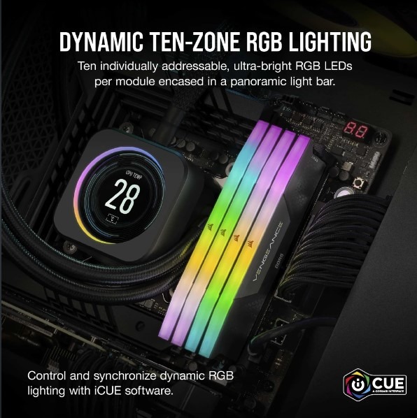 CORSAIR VENGEANCE® RGB 32GB (2X16GB) DDR5 DRAM 5200MT/S CL40 MEMORY KIT — BLACK