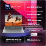 LENOVO IDEAPAD PRO 5 INTEL EVO CORE ULTRA 9 185H BUILT-IN AI 14″ (35.56CM) 2.8K-OLED 400NITS 120HZ LAPTOP (32GB/1TB SSD/WIN11/OFFICE 21/FHD+IR CAMERA/ALEXA/3 MON GAME PASS/GREY/1.4KG), 83D2001GIN